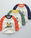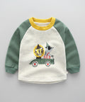 - المميزات: طبعة سيارات حيوانية لطيفة، أكمام راجلان، تصميم بألوان متداخلة، ياقة وأساور مضلعة