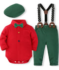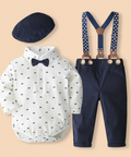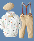 - النوع: طقم من ثلاث قطع - قميص قصير + بنطال بحمالات + قبعة