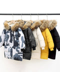 معطف منفوخ بغطاء رأس من الفرو الصناعي