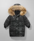 - الميزات: غطاء رأس قابل للفصل من الفرو الصناعي، إغلاق بسحاب وزر، جيوب رقعة، أساور مطاطية، تصميم يصل إلى الركبة