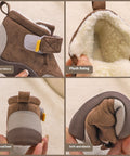 - المميزات: بطانة من الصوف الدافئ، نعل مانع للانزلاق، قاعدة ناعمة، مقاوم للتآكل، إغلاق سهل بشريط لاصق