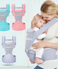 - Features: Waist stool for comfort, multiple carrying methods, adjustable straps, breathable mesh panel, available in grey, blue, pink