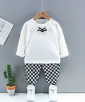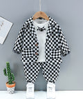 - Features: Plaid blazer with single-breasted closure, elastic waist trousers, detachable bow tie, smart and trendy look