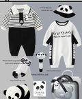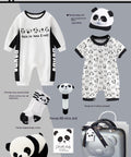 - Features: Soft cotton jumpsuits, panda hat, socks, plush doll, rattle, gift suitcase, blessing card