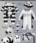 - Type D: Panda striped long-sleeve jumpsuit + panda “This is how I roll” jumpsuit + panda hat + socks + plush doll + rattle + blessing card + suitcase + handbag