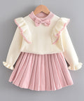 - Type: two-piece set — ruffle pullover + pleated skirt
