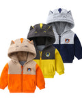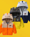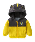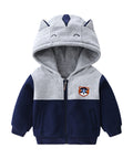 - Features: Animal ears on hood, embroidered badge, color-block design, front zipper