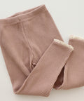 • Features: Soft ribbed texture, lace trim hem, middle waist fit, cozy stretch