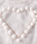 - Features: Textured heart knit pattern, pom-pom accents, drawstring waist, ribbed cuffs and hems, soft pastel tones