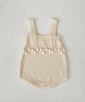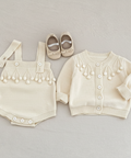 Pom Detail Cotton Knit Cardigan and Suspender Romper Set