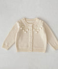 • Features: Adorable pompom details, long sleeve buttoned jacket, suspender-style romper with button straps, cozy breathable knit cotton, neutral apricot-white tone
