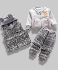 - Type: Three-piece set — hooded vest + sweatshirt + jogger pants
