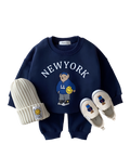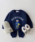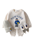- Features: Crewneck sweatshirt, ribbed cuffs, elastic waist pants, soft fleece lining, sporty bear graphic print