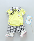 Soft Cotton Polo T-shirt and plaid Shorts Set