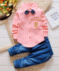 - Type: Two-piece set – striped shirt with detachable bow tie and trousers