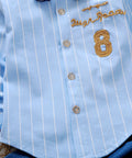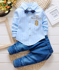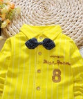 - Features: Striped button-up shirt, detachable bow tie, elastic waistband trousers, soft modal fabric, gentle comfort fit