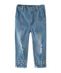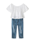 Off-Shoulder Eyelet Blouse and Denim Jeans Set
