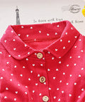 • Features: Heart print pattern, button front, elastic waist, ruffle hem