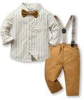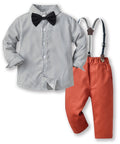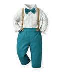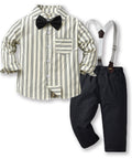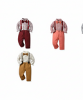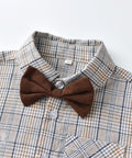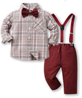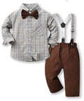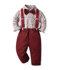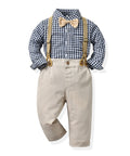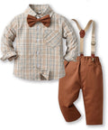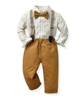 Gentleman Plaid Shirt, Suspender Pants and Bow Tie Set