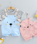 - Features: Friendly character embroidery, front pockets, short-sleeve tee, rolled hem shorts