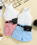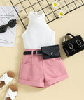Ärmelloses Top mit hohem Kragen und Shorts mit Gürtel (Set)