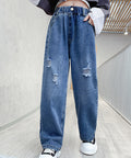 - Merkmale: Lockere Passform, elastischer Bund, Risse, hoher Bund