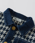 - Estilo: Estampado de cuadros, ribete de mezclilla