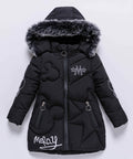 Elegante abrigo acolchado con capucha de piel