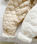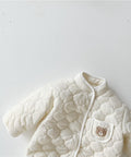 - Características: Diseño acolchado grueso, forro de algodón suave, bolsillo con oso bordado, grado de seguridad Clase A, cierre de botón