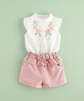 Floral Embroidered Shirt and High-Waist Shorts Set