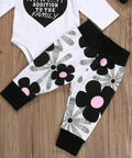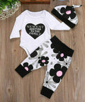 Flower Print Long Sleeve Romper, Pants and Hat Set
