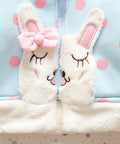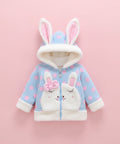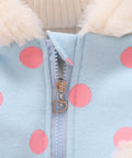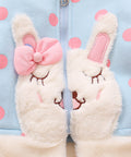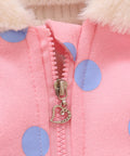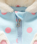 - Features: bunny ear hood, embroidered bunny pockets, polka dot print, front zipper, soft lining