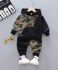 Komplet iz frotirnega puloverja s kapuco in hlač za prosti čas s kamuflažnim potiskom