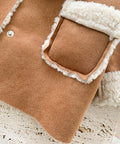 • Značilnosti: Mehka tekstura jagnječje volne, topla plišasta podloga, zapenjanje na gumbe, širok ovratnik in dva velika sprednja žepa za dodaten čar in funkcionalnost