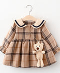 Komplet bombažne karo obleke in punčke medvedka