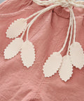 • Značilnosti: Majica z vzorcem lubenice, elastične kratke hlače z zategljivo vrvico in resicami iz listov, enostaven pulover