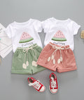 Komplet majice z grafiko lubenice in roza kratkih hlač